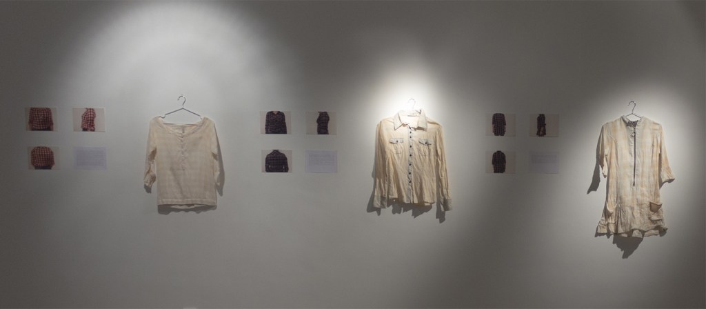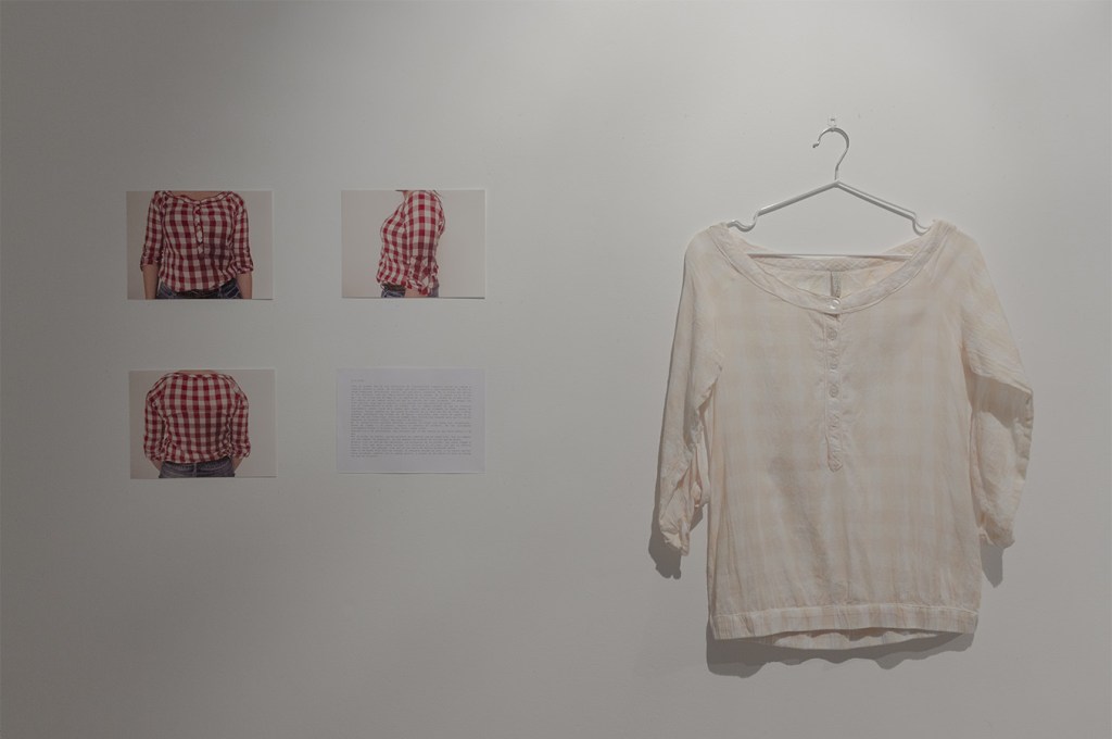 Installation consisting of 5 actions. I wear 5 of my teenage clothes some years later, I register the action with photography and writing and then I destroy the clothes with bleach.